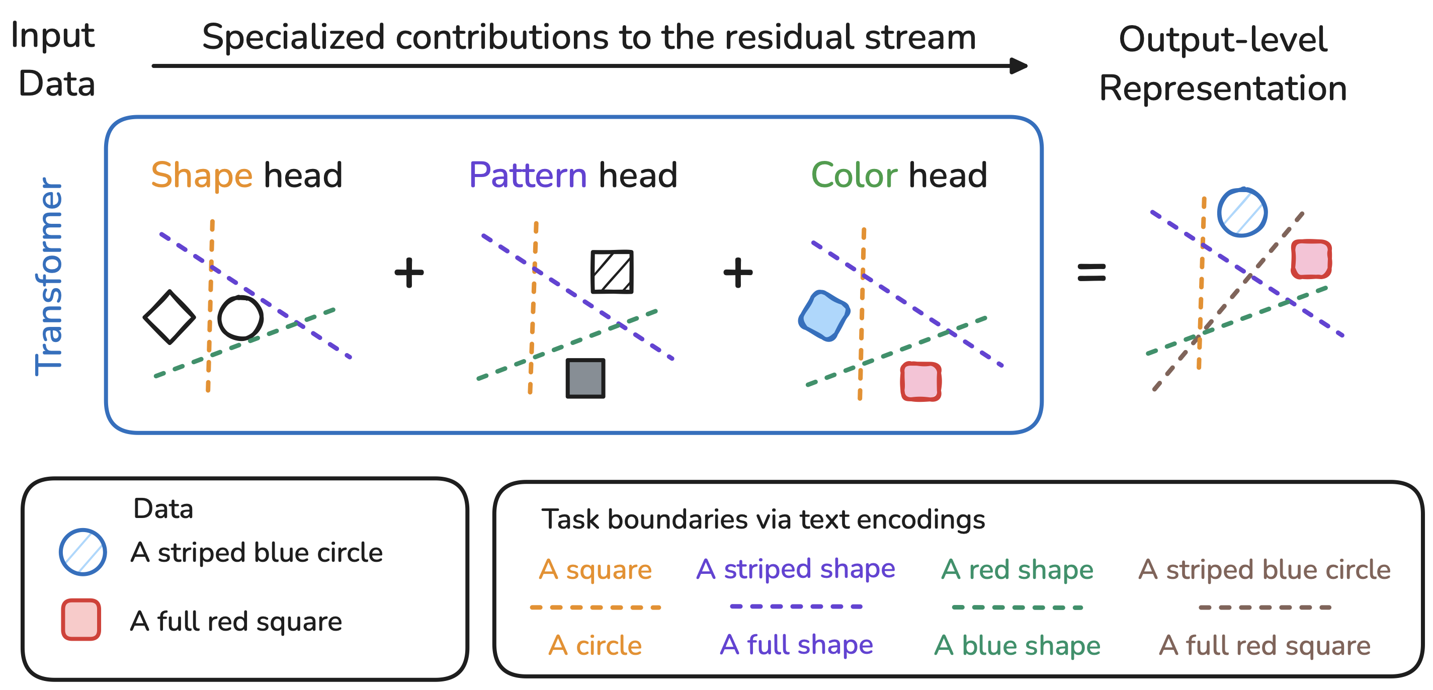 - NeurIPS spotlightIn The Thirty-ninth Annual Conference on Neural Information Processing Systems, 2025TL;DR: We use Simultaneous Orthogonal Matching Pursuit to identify attention heads specialized in narrow semantic domains (colors, countries, toxicity) in large language and vision-language models. Intervening on as few as 1% of heads enables bidirectional concept control—suppressing toxic content by 34-51% or enhancing target attributes—without any training