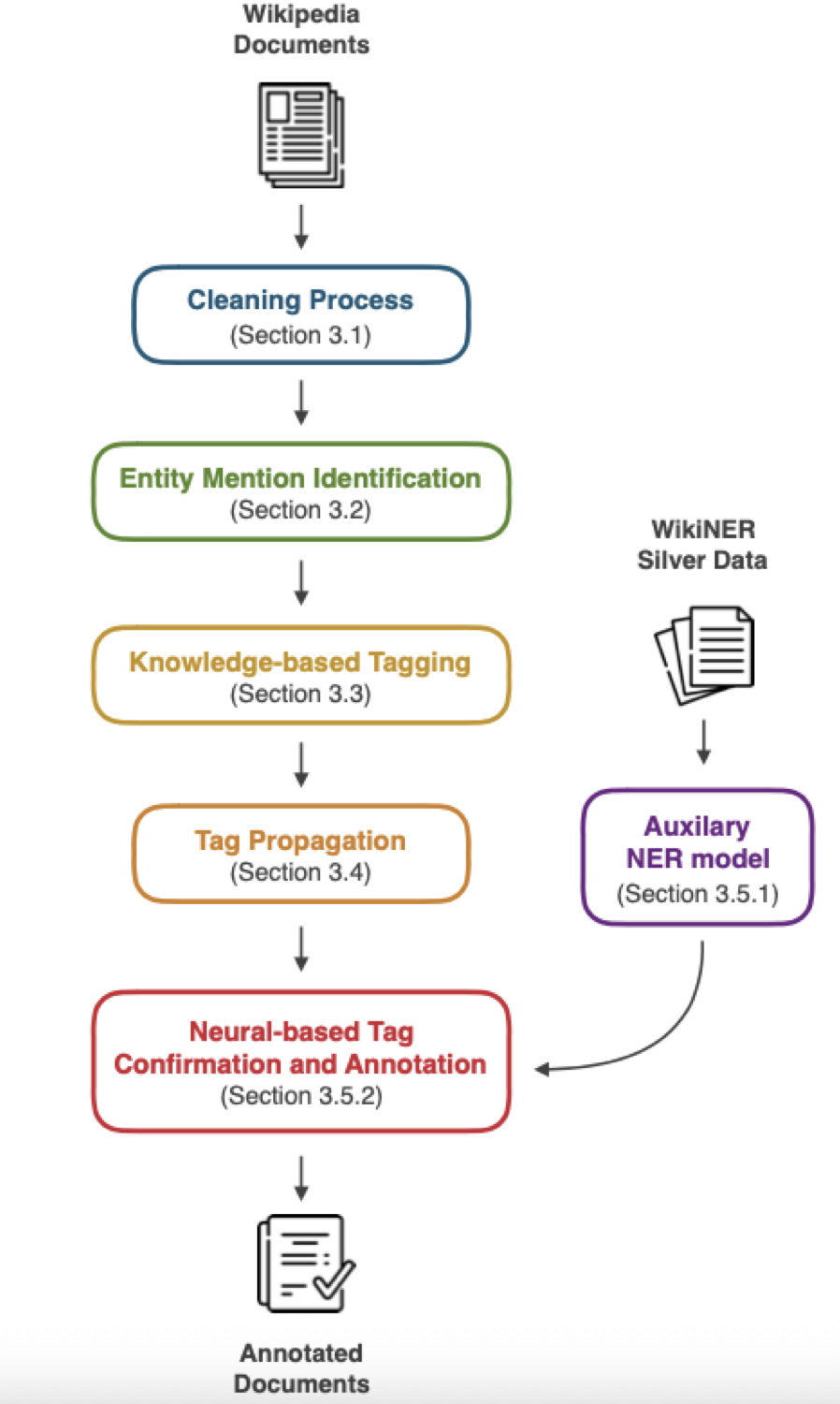 - In Conference on Empirical Methods in Natural Language Processing, 2021TL;DR: We create high-quality silver (automatically labeled) training data for multilingual Named Entity Recognition by combining knowledge-based approaches from Wikipedia with neural models and a novel domain adaptation technique, achieving 6 F1-score point improvement over previous state-of-the-art data creation methods